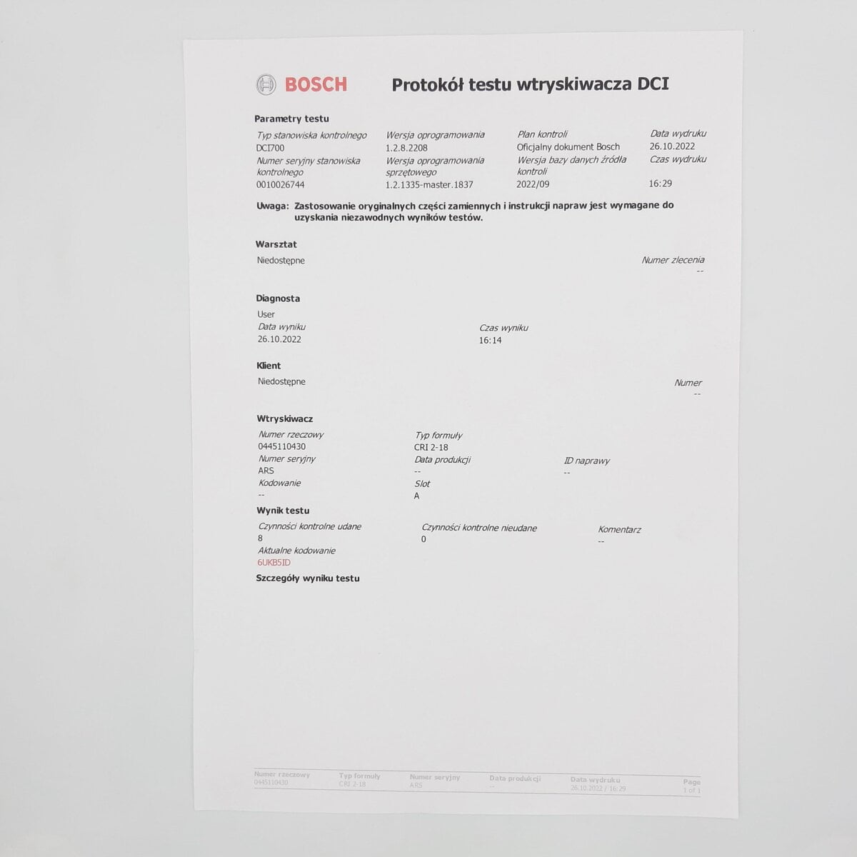Nowy wtryskiwacz Bosch numer: 0445110430